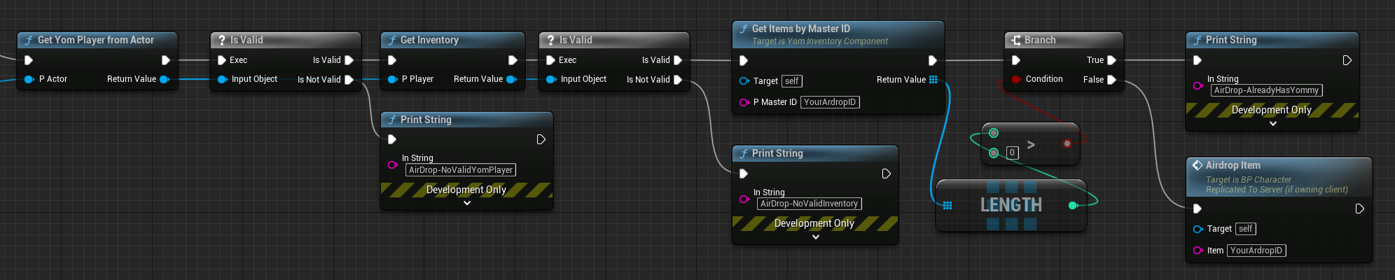 The airdrop node will add an item based on the item ID to the player's wallet. Please note that the airdrop function will not work for users who haven't logged in with a wallet.