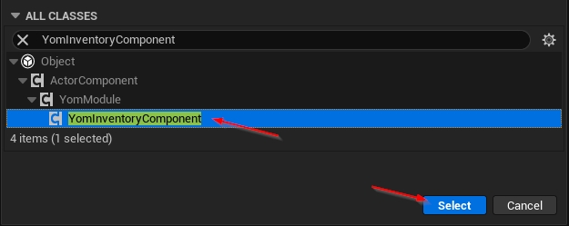 Create another blueprint like in step 1, but this should have YomInventoryComponent
